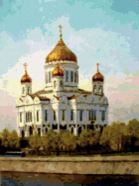 Ориентировочно так, схема вышивки «Hram», созданная автором lukrecija12, будет выглядеть при отшиве на канве. Размер данной вышивки равен 140x186 крестов, при этом используется 57 цветов. Ключевые слова, по которым можно найти эту схему: religija. Также, вы можете взглянуть на оригинальную картинку, соответствующую данной схеме вышивки.
