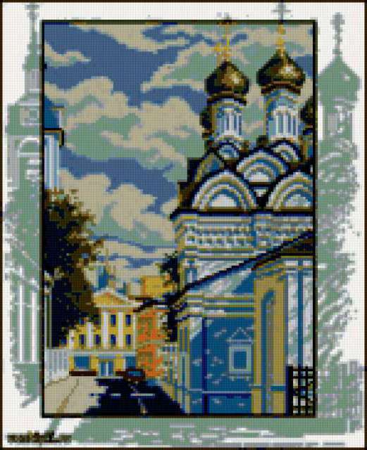Ориентировочно так, схема вышивки «Hram», созданная автором lukrecija12, будет выглядеть при отшиве на канве. Размер данной вышивки равен 149x183 крестов, при этом используется 38 цветов. Ключевые слова, по которым можно найти эту схему: pejzaz, religija. Также, вы можете взглянуть на оригинальную картинку, соответствующую данной схеме вышивки.