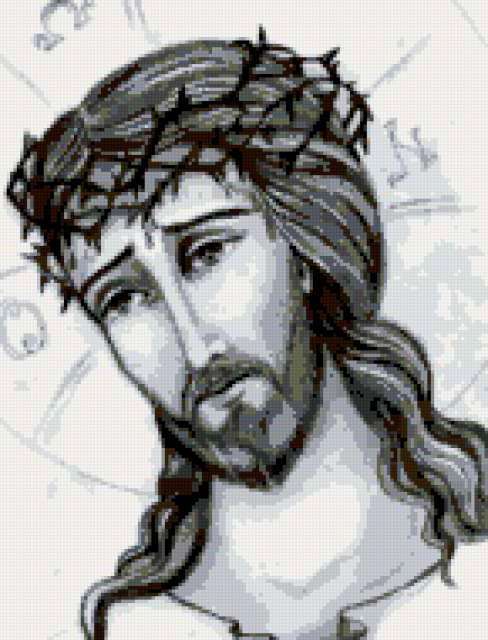 Ориентировочно так, схема вышивки «IIsus hristos», созданная автором silviasole, будет выглядеть при отшиве на канве. Размер данной вышивки равен 145x190 крестов, при этом используется 15 цветов. К несчастью, автор не назначил для схемы ключевые слова. Также, вы можете взглянуть на оригинальную картинку, соответствующую данной схеме вышивки.