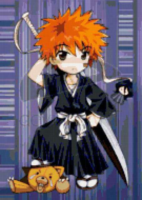 Ориентировочно так, схема вышивки «Icigo 22», созданная автором Itachi, будет выглядеть при отшиве на канве. Размер данной вышивки равен 135x190 крестов, при этом используется 65 цветов. Ключевые слова, по которым можно найти эту схему: anime / bleach. Также, вы можете взглянуть на оригинальную картинку, соответствующую данной схеме вышивки.