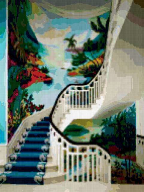 Ориентировочно так, схема вышивки «Interior», созданная автором aniela, будет выглядеть при отшиве на канве. Размер данной вышивки равен 143x190 крестов, при этом используется 80 цветов. Ключевые слова, по которым можно найти эту схему: interior. Также, вы можете взглянуть на оригинальную картинку, соответствующую данной схеме вышивки.