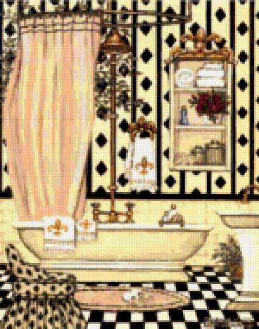 Ориентировочно так, схема вышивки «Interior», созданная автором aniela, будет выглядеть при отшиве на канве. Размер данной вышивки равен 150x190 крестов, при этом используется 65 цветов. Ключевые слова, по которым можно найти эту схему: interior. Также, вы можете взглянуть на оригинальную картинку, соответствующую данной схеме вышивки.