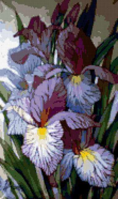 Ориентировочно так, схема вышивки «Irisy», созданная автором lukrecija12, будет выглядеть при отшиве на канве. Размер данной вышивки равен 111x186 крестов, при этом используется 42 цветов. Ключевые слова, по которым можно найти эту схему: flower. Также, вы можете взглянуть на оригинальную картинку, соответствующую данной схеме вышивки.