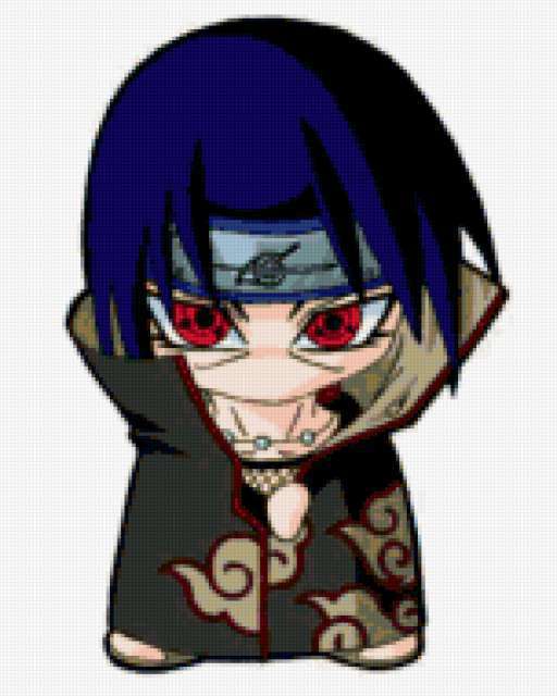 Ориентировочно так, схема вышивки «Itachi 1», созданная автором Itachi, будет выглядеть при отшиве на канве. Размер данной вышивки равен 152x190 крестов, при этом используется 65 цветов. Ключевые слова, по которым можно найти эту схему: anime / naruto. Также, вы можете взглянуть на оригинальную картинку, соответствующую данной схеме вышивки.