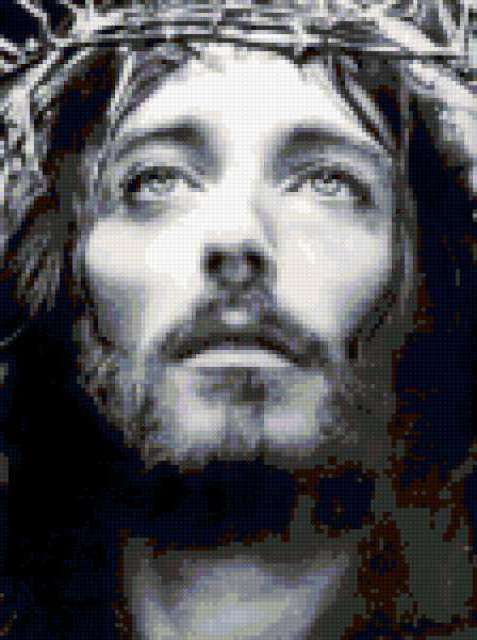 Ориентировочно так, схема вышивки «Jesus», созданная автором iborissova, будет выглядеть при отшиве на канве. Размер данной вышивки равен 112x150 крестов, при этом используется 26 цветов. Ключевые слова, по которым можно найти эту схему: jesus. Также, вы можете взглянуть на оригинальную картинку, соответствующую данной схеме вышивки.