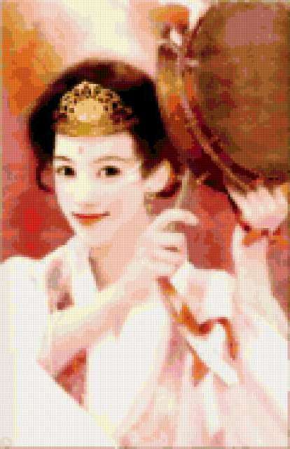 Ориентировочно так, схема вышивки «Kitajanka», созданная автором lukrecija12, будет выглядеть при отшиве на канве. Размер данной вышивки равен 121x187 крестов, при этом используется 57 цветов. Ключевые слова, по которым можно найти эту схему: zenshina, vostok. Также, вы можете взглянуть на оригинальную картинку, соответствующую данной схеме вышивки.