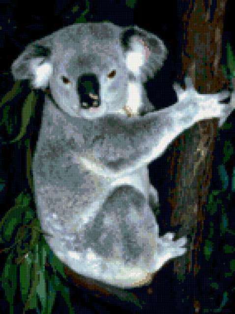 Ориентировочно так, схема вышивки «Koala», созданная автором aniela, будет выглядеть при отшиве на канве. Размер данной вышивки равен 142x190 крестов, при этом используется 52 цветов. Ключевые слова, по которым можно найти эту схему: Wildlife, animals, Животные. Также, вы можете взглянуть на оригинальную картинку, соответствующую данной схеме вышивки.