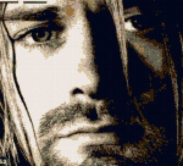 Ориентировочно так, схема вышивки «Kurt Cobain», созданная автором LaLuneNoire, будет выглядеть при отшиве на канве. Размер данной вышивки равен 150x136 крестов, при этом используется 11 цветов. Ключевые слова, по которым можно найти эту схему: Курт, Кобэйн, нирвана, nirvana, Kurt, Cobaine, гранж. Также, вы можете взглянуть на оригинальную картинку, соответствующую данной схеме вышивки.
