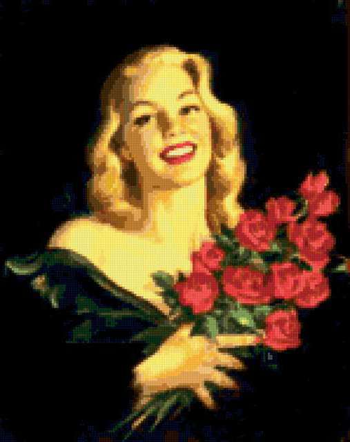Ориентировочно так, схема вышивки «Lady», созданная автором lukrecija12, будет выглядеть при отшиве на канве. Размер данной вышивки равен 149x188 крестов, при этом используется 36 цветов. Ключевые слова, по которым можно найти эту схему: women. Также, вы можете взглянуть на оригинальную картинку, соответствующую данной схеме вышивки.