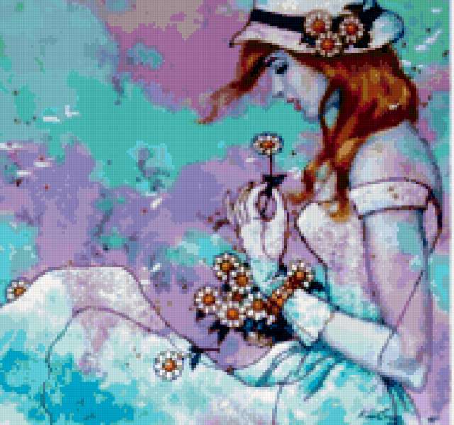 Ориентировочно так, схема вышивки «Lady», созданная автором aniela, будет выглядеть при отшиве на канве. Размер данной вышивки равен 190x178 крестов, при этом используется 75 цветов. Ключевые слова, по которым можно найти эту схему: lady, woman, женщина, девушка, дамa. Также, вы можете взглянуть на оригинальную картинку, соответствующую данной схеме вышивки.