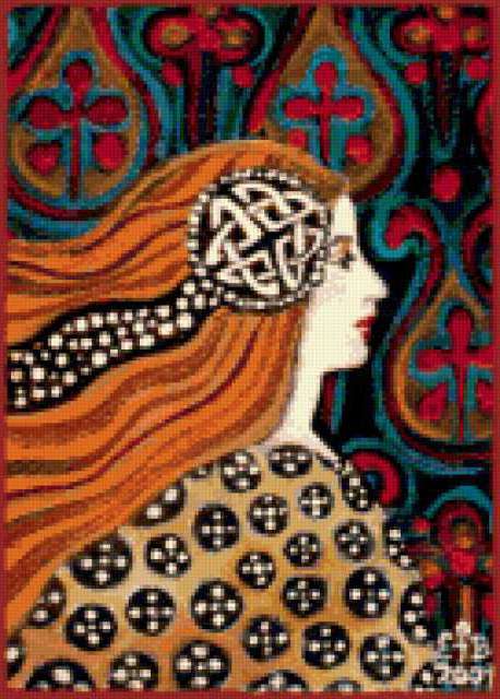 Ориентировочно так, схема вышивки «Lady», созданная автором aniela, будет выглядеть при отшиве на канве. Размер данной вышивки равен 136x190 крестов, при этом используется 70 цветов. Ключевые слова, по которым можно найти эту схему: lady, woman, женщина, девушка, дамa. Также, вы можете взглянуть на оригинальную картинку, соответствующую данной схеме вышивки.