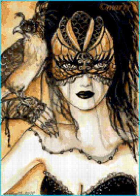 Ориентировочно так, схема вышивки «Lady», созданная автором aniela, будет выглядеть при отшиве на канве. Размер данной вышивки равен 136x190 крестов, при этом используется 70 цветов. Ключевые слова, по которым можно найти эту схему: фэнтези, fantasy, lady. Также, вы можете взглянуть на оригинальную картинку, соответствующую данной схеме вышивки.