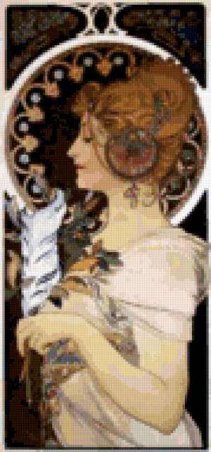 Ориентировочно так, схема вышивки «Lady», созданная автором aniela, будет выглядеть при отшиве на канве. Размер данной вышивки равен 89x190 крестов, при этом используется 71 цветов. Ключевые слова, по которым можно найти эту схему: lady, woman, женщина, девушка, дамa. Также, вы можете взглянуть на оригинальную картинку, соответствующую данной схеме вышивки.