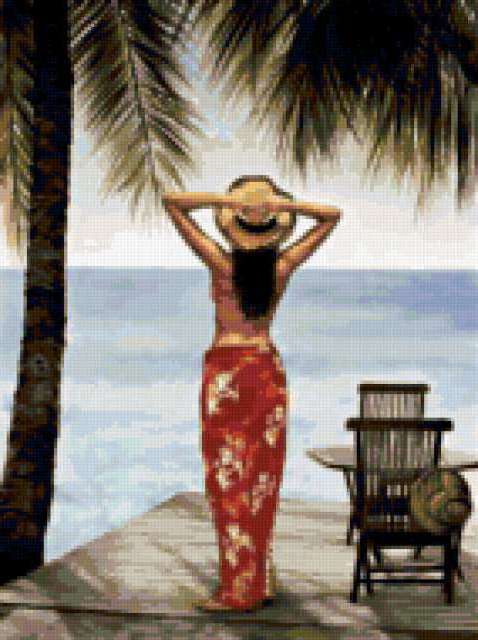 Ориентировочно так, схема вышивки «Lady», созданная автором aniela, будет выглядеть при отшиве на канве. Размер данной вышивки равен 142x190 крестов, при этом используется 76 цветов. Ключевые слова, по которым можно найти эту схему: lady, woman, женщина, девушка, дамa, seascape. Также, вы можете взглянуть на оригинальную картинку, соответствующую данной схеме вышивки.
