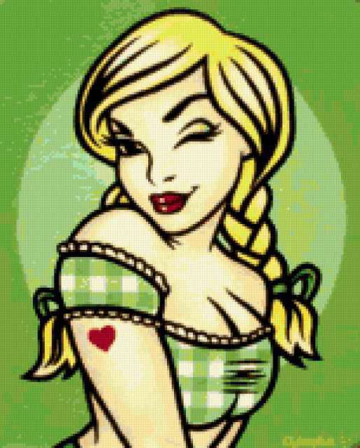 Ориентировочно так, схема вышивки «Lady», созданная автором aniela, будет выглядеть при отшиве на канве. Размер данной вышивки равен 153x190 крестов, при этом используется 57 цветов. Ключевые слова, по которым можно найти эту схему: lady, woman, женщина, девушка, дамa. Также, вы можете взглянуть на оригинальную картинку, соответствующую данной схеме вышивки.