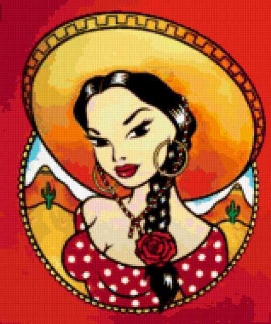 Ориентировочно так, схема вышивки «Lady», созданная автором aniela, будет выглядеть при отшиве на канве. Размер данной вышивки равен 159x190 крестов, при этом используется 69 цветов. Ключевые слова, по которым можно найти эту схему: lady, woman, женщина, девушка, дамa. Также, вы можете взглянуть на оригинальную картинку, соответствующую данной схеме вышивки.