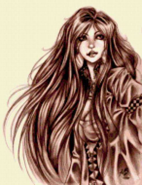 Ориентировочно так, схема вышивки «Lady», созданная автором aniela, будет выглядеть при отшиве на канве. Размер данной вышивки равен 146x190 крестов, при этом используется 48 цветов. Ключевые слова, по которым можно найти эту схему: lady, woman, женщина, девушка, дамa. Также, вы можете взглянуть на оригинальную картинку, соответствующую данной схеме вышивки.