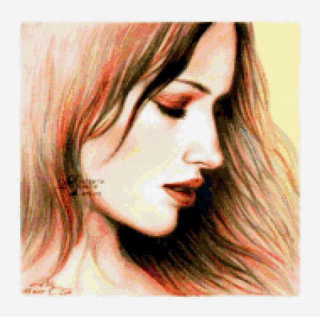 Ориентировочно так, схема вышивки «Lady», созданная автором aniela, будет выглядеть при отшиве на канве. Размер данной вышивки равен 190x188 крестов, при этом используется 71 цветов. Ключевые слова, по которым можно найти эту схему: lady, woman, женщина, девушка, дамa. Также, вы можете взглянуть на оригинальную картинку, соответствующую данной схеме вышивки.
