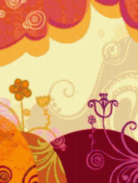 Ориентировочно так, схема вышивки «Landscape Tiptych - Left», созданная автором pandreevska, будет выглядеть при отшиве на канве. Размер данной вышивки равен 143x190 крестов, при этом используется 59 цветов. Ключевые слова, по которым можно найти эту схему: декорация, абстракт, триптих. Также, вы можете взглянуть на оригинальную картинку, соответствующую данной схеме вышивки.