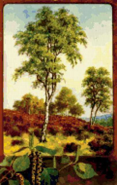 Ориентировочно так, схема вышивки «Landscape», созданная автором aniela, будет выглядеть при отшиве на канве. Размер данной вышивки равен 121x190 крестов, при этом используется 70 цветов. Ключевые слова, по которым можно найти эту схему: пейзаж, landscape. Также, вы можете взглянуть на оригинальную картинку, соответствующую данной схеме вышивки.