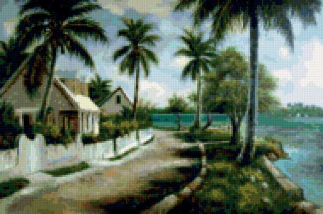 Ориентировочно так, схема вышивки «Landscape», созданная автором aniela, будет выглядеть при отшиве на канве. Размер данной вышивки равен 190x126 крестов, при этом используется 79 цветов. Ключевые слова, по которым можно найти эту схему: пейзаж, landscape. Также, вы можете взглянуть на оригинальную картинку, соответствующую данной схеме вышивки.