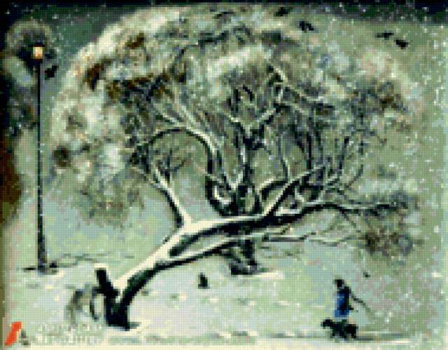 Ориентировочно так, схема вышивки «Landscape», созданная автором aniela, будет выглядеть при отшиве на канве. Размер данной вышивки равен 190x149 крестов, при этом используется 51 цветов. Ключевые слова, по которым можно найти эту схему: winter, пейзаж, landscape, зима. Также, вы можете взглянуть на оригинальную картинку, соответствующую данной схеме вышивки.