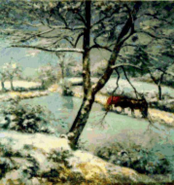Ориентировочно так, схема вышивки «Landscape», созданная автором aniela, будет выглядеть при отшиве на канве. Размер данной вышивки равен 179x190 крестов, при этом используется 73 цветов. Ключевые слова, по которым можно найти эту схему: winter, пейзаж, landscape, зима. Также, вы можете взглянуть на оригинальную картинку, соответствующую данной схеме вышивки.