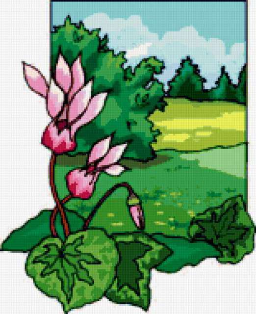 Ориентировочно так, схема вышивки «Landscape», созданная автором aniela, будет выглядеть при отшиве на канве. Размер данной вышивки равен 155x190 крестов, при этом используется 57 цветов. Ключевые слова, по которым можно найти эту схему: цветы, flowers. Также, вы можете взглянуть на оригинальную картинку, соответствующую данной схеме вышивки.