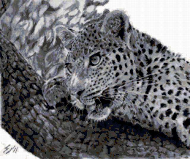 Ориентировочно так, схема вышивки «Leopard», созданная автором aniela, будет выглядеть при отшиве на канве. Размер данной вышивки равен 190x159 крестов, при этом используется 27 цветов. Ключевые слова, по которым можно найти эту схему: wildlife, animals, животные. Также, вы можете взглянуть на оригинальную картинку, соответствующую данной схеме вышивки.