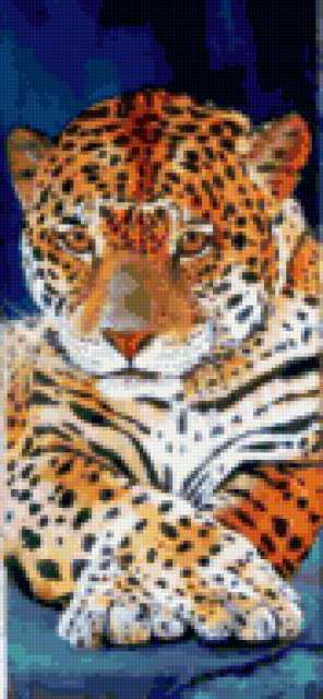 Ориентировочно так, схема вышивки «Leopard», созданная автором aniela, будет выглядеть при отшиве на канве. Размер данной вышивки равен 88x190 крестов, при этом используется 81 цветов. Ключевые слова, по которым можно найти эту схему: wildlife, animals, животные. Также, вы можете взглянуть на оригинальную картинку, соответствующую данной схеме вышивки.