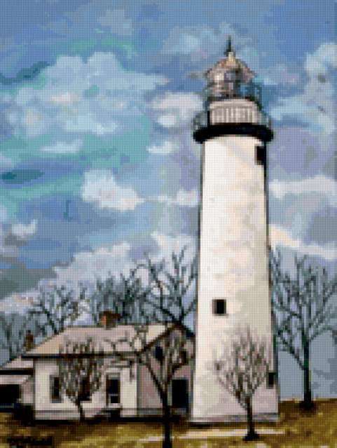 Ориентировочно так, схема вышивки «Lighthouse», созданная автором aniela, будет выглядеть при отшиве на канве. Размер данной вышивки равен 143x190 крестов, при этом используется 72 цветов. Ключевые слова, по которым можно найти эту схему: landscape, lighthouse, маяк. Также, вы можете взглянуть на оригинальную картинку, соответствующую данной схеме вышивки.