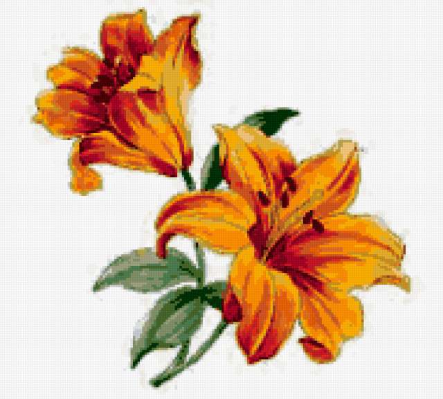 Ориентировочно так, схема вышивки «Lilii», созданная автором lukrecija12, будет выглядеть при отшиве на канве. Размер данной вышивки равен 190x171 крестов, при этом используется 34 цветов. Ключевые слова, по которым можно найти эту схему: flower. Также, вы можете взглянуть на оригинальную картинку, соответствующую данной схеме вышивки.