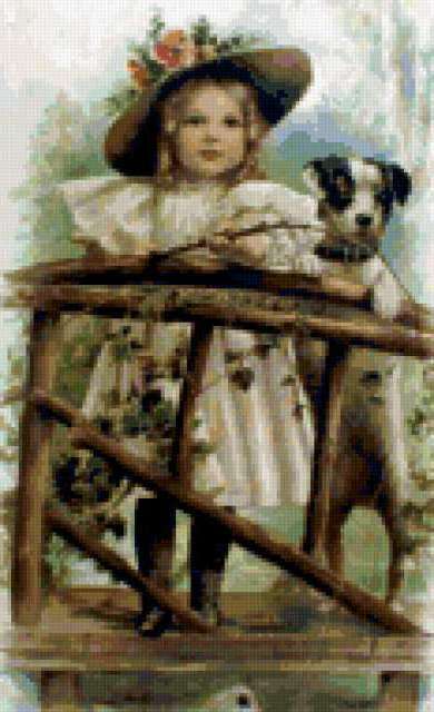 Ориентировочно так, схема вышивки «Little miss», созданная автором aniela, будет выглядеть при отшиве на канве. Размер данной вышивки равен 116x190 крестов, при этом используется 72 цветов. Ключевые слова, по которым можно найти эту схему: животные, pets, animals, girl. Также, вы можете взглянуть на оригинальную картинку, соответствующую данной схеме вышивки.