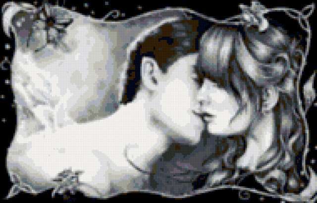 Ориентировочно так, схема вышивки «Love», созданная автором evijan, будет выглядеть при отшиве на канве. Размер данной вышивки равен 190x122 крестов, при этом используется 21 цветов. Ключевые слова, по которым можно найти эту схему: mystic. Также, вы можете взглянуть на оригинальную картинку, соответствующую данной схеме вышивки.
