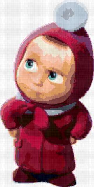Ориентировочно так, схема вышивки «MASHENKA», созданная автором kul_irina, будет выглядеть при отшиве на канве. Размер данной вышивки равен 90x178 крестов, при этом используется 28 цветов. К несчастью, автор не назначил для схемы ключевые слова. Также, вы можете взглянуть на оригинальную картинку, соответствующую данной схеме вышивки.