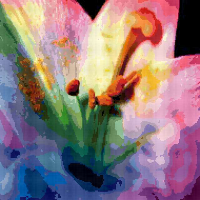 Ориентировочно так, схема вышивки «Magic Flowers 10», созданная автором pandreevska, будет выглядеть при отшиве на канве. Размер данной вышивки равен 190x190 крестов, при этом используется 82 цветов. Ключевые слова, по которым можно найти эту схему: цветы, абстракт, фентези. Также, вы можете взглянуть на оригинальную картинку, соответствующую данной схеме вышивки.
