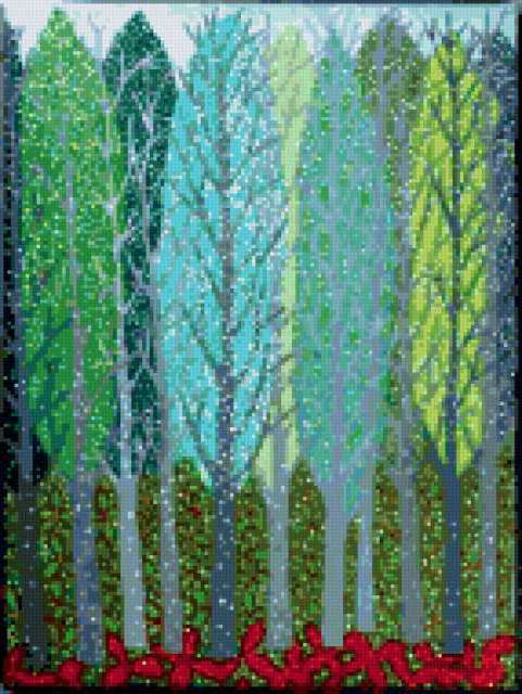 Ориентировочно так, схема вышивки «Magic Forest», созданная автором pandreevska, будет выглядеть при отшиве на канве. Размер данной вышивки равен 143x190 крестов, при этом используется 54 цветов. Ключевые слова, по которым можно найти эту схему: fairytale, цветы, рисунок, картина, magic. Также, вы можете взглянуть на оригинальную картинку, соответствующую данной схеме вышивки.