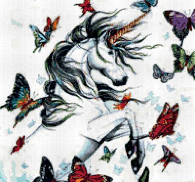Ориентировочно так, схема вышивки «Magic Pictures - Easy», созданная автором pandreevska, будет выглядеть при отшиве на канве. Размер данной вышивки равен 190x178 крестов, при этом используется 32 цветов. Ключевые слова, по которым можно найти эту схему: fairytale, magic, stunning, dream, unicorn, easy, просто. Также, вы можете взглянуть на оригинальную картинку, соответствующую данной схеме вышивки.