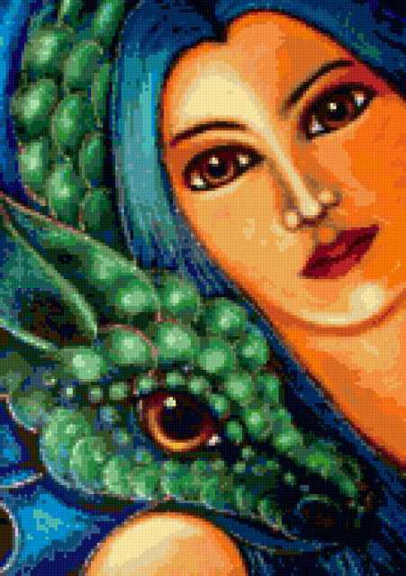 Ориентировочно так, схема вышивки «Mermaid», созданная автором pandreevska, будет выглядеть при отшиве на канве. Размер данной вышивки равен 134x190 крестов, при этом используется 58 цветов. Ключевые слова, по которым можно найти эту схему: mermaid, fairytale, beauty, sea . Также, вы можете взглянуть на оригинальную картинку, соответствующую данной схеме вышивки.