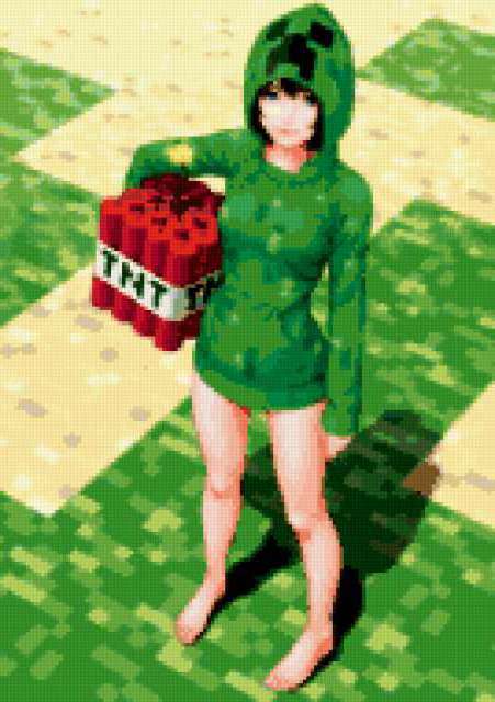 Ориентировочно так, схема вышивки «Minecraft», созданная автором PandaHeroo, будет выглядеть при отшиве на канве. Размер данной вышивки равен 134x190 крестов, при этом используется 51 цветов. К несчастью, автор не назначил для схемы ключевые слова. Также, вы можете взглянуть на оригинальную картинку, соответствующую данной схеме вышивки.
