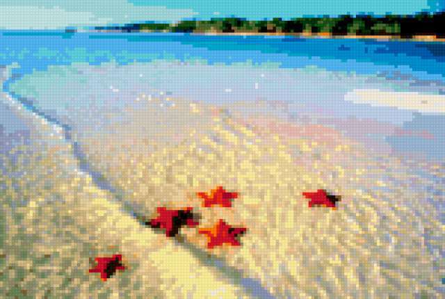 Ориентировочно так, схема вышивки «More», созданная автором anecdot1, будет выглядеть при отшиве на канве. Размер данной вышивки равен 150x101 крестов, при этом используется 73 цветов. К несчастью, автор не назначил для схемы ключевые слова. Также, вы можете взглянуть на оригинальную картинку, соответствующую данной схеме вышивки.