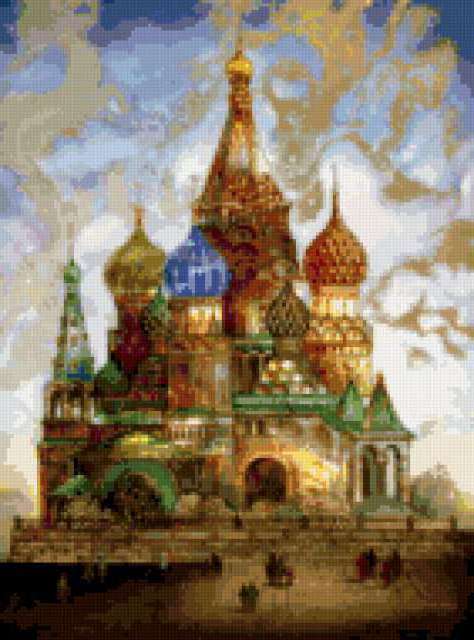 Ориентировочно так, схема вышивки «Moscow», созданная автором lukrecija12, будет выглядеть при отшиве на канве. Размер данной вышивки равен 141x190 крестов, при этом используется 76 цветов. Ключевые слова, по которым можно найти эту схему: gorod. Также, вы можете взглянуть на оригинальную картинку, соответствующую данной схеме вышивки.