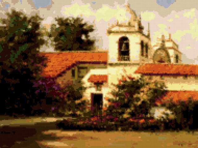 Ориентировочно так, схема вышивки «Mostafa Keyhani », созданная автором avevstigneeva, будет выглядеть при отшиве на канве. Размер данной вышивки равен 190x143 крестов, при этом используется 40 цветов. Ключевые слова, по которым можно найти эту схему: живопись, пейзаж, город. Также, вы можете взглянуть на оригинальную картинку, соответствующую данной схеме вышивки.