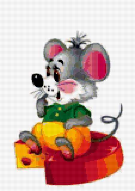 Ориентировочно так, схема вышивки «Mouse with cheese», созданная автором Cherry_LudOk, будет выглядеть при отшиве на канве. Размер данной вышивки равен 113x160 крестов, при этом используется 67 цветов. Ключевые слова, по которым можно найти эту схему: мышь. Также, вы можете взглянуть на оригинальную картинку, соответствующую данной схеме вышивки.