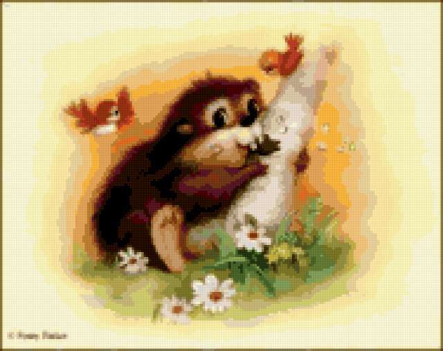 Ориентировочно так, схема вышивки «Multik», созданная автором lukrecija12, будет выглядеть при отшиве на канве. Размер данной вышивки равен 188x149 крестов, при этом используется 48 цветов. Ключевые слова, по которым можно найти эту схему: multfilm. Также, вы можете взглянуть на оригинальную картинку, соответствующую данной схеме вышивки.