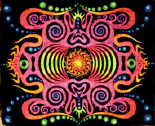 Ориентировочно так, схема вышивки «Muster», созданная автором aniela, будет выглядеть при отшиве на канве. Размер данной вышивки равен 190x154 крестов, при этом используется 65 цветов. К несчастью, автор не назначил для схемы ключевые слова. Также, вы можете взглянуть на оригинальную картинку, соответствующую данной схеме вышивки.