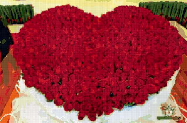 Ориентировочно так, схема вышивки «My heard», созданная автором lpscst, будет выглядеть при отшиве на канве. Размер данной вышивки равен 190x126 крестов, при этом используется 34 цветов. К несчастью, автор не назначил для схемы ключевые слова. Также, вы можете взглянуть на оригинальную картинку, соответствующую данной схеме вышивки.