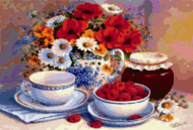 Ориентировочно так, схема вышивки «Natiurmort», созданная автором lukrecija12, будет выглядеть при отшиве на канве. Размер данной вышивки равен 190x129 крестов, при этом используется 59 цветов. Ключевые слова, по которым можно найти эту схему: natiurmort. Также, вы можете взглянуть на оригинальную картинку, соответствующую данной схеме вышивки.