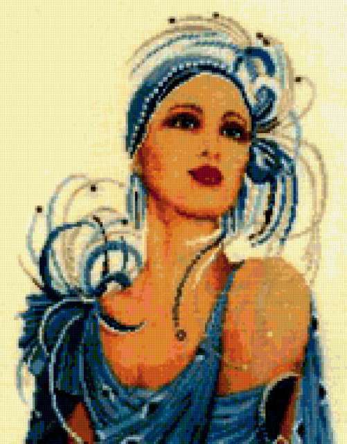 Ориентировочно так, схема вышивки «Neiu», созданная автором aniela, будет выглядеть при отшиве на канве. Размер данной вышивки равен 149x190 крестов, при этом используется 68 цветов. Ключевые слова, по которым можно найти эту схему: Lady, woman, женщина, девушка. Также, вы можете взглянуть на оригинальную картинку, соответствующую данной схеме вышивки.