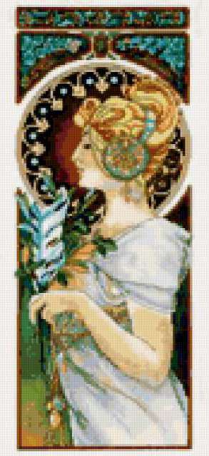 Ориентировочно так, схема вышивки «Neiu», созданная автором aniela, будет выглядеть при отшиве на канве. Размер данной вышивки равен 87x190 крестов, при этом используется 80 цветов. Ключевые слова, по которым можно найти эту схему: Lady, woman, женщина, девушка. Также, вы можете взглянуть на оригинальную картинку, соответствующую данной схеме вышивки.